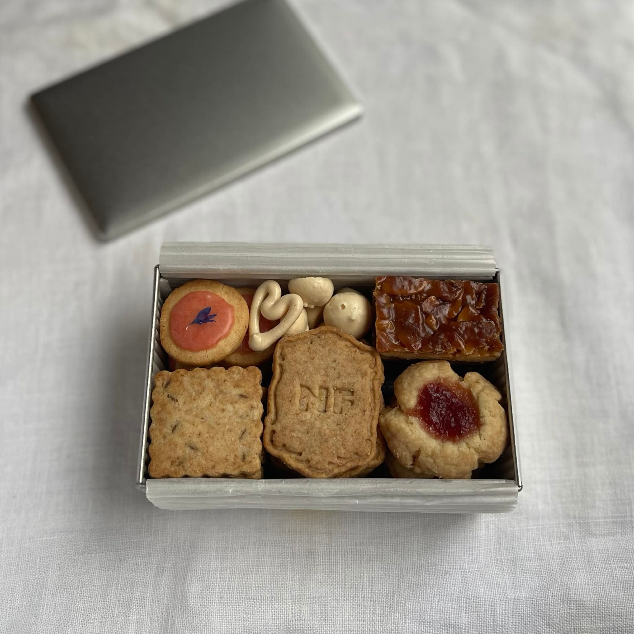 シンプルなシルバーの缶に5種類のクッキーを詰め合わせました。